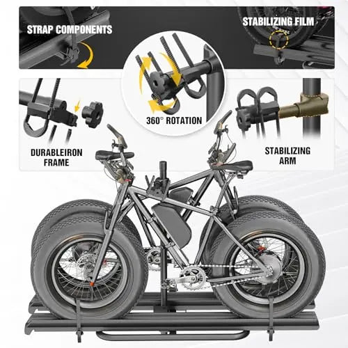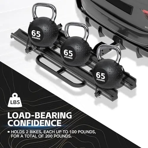 • 【Designed for Heavy-Duty Load Capacity】This YZONA electric bike rack is constructed from heavy-duty steel and aluminum with a corrosion-resistant electronic coating. It's designed to hold 2 bikes, each weighing up to 100 pounds, for a total capacity of 200 pounds.