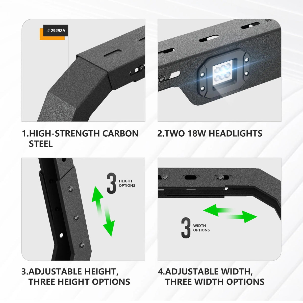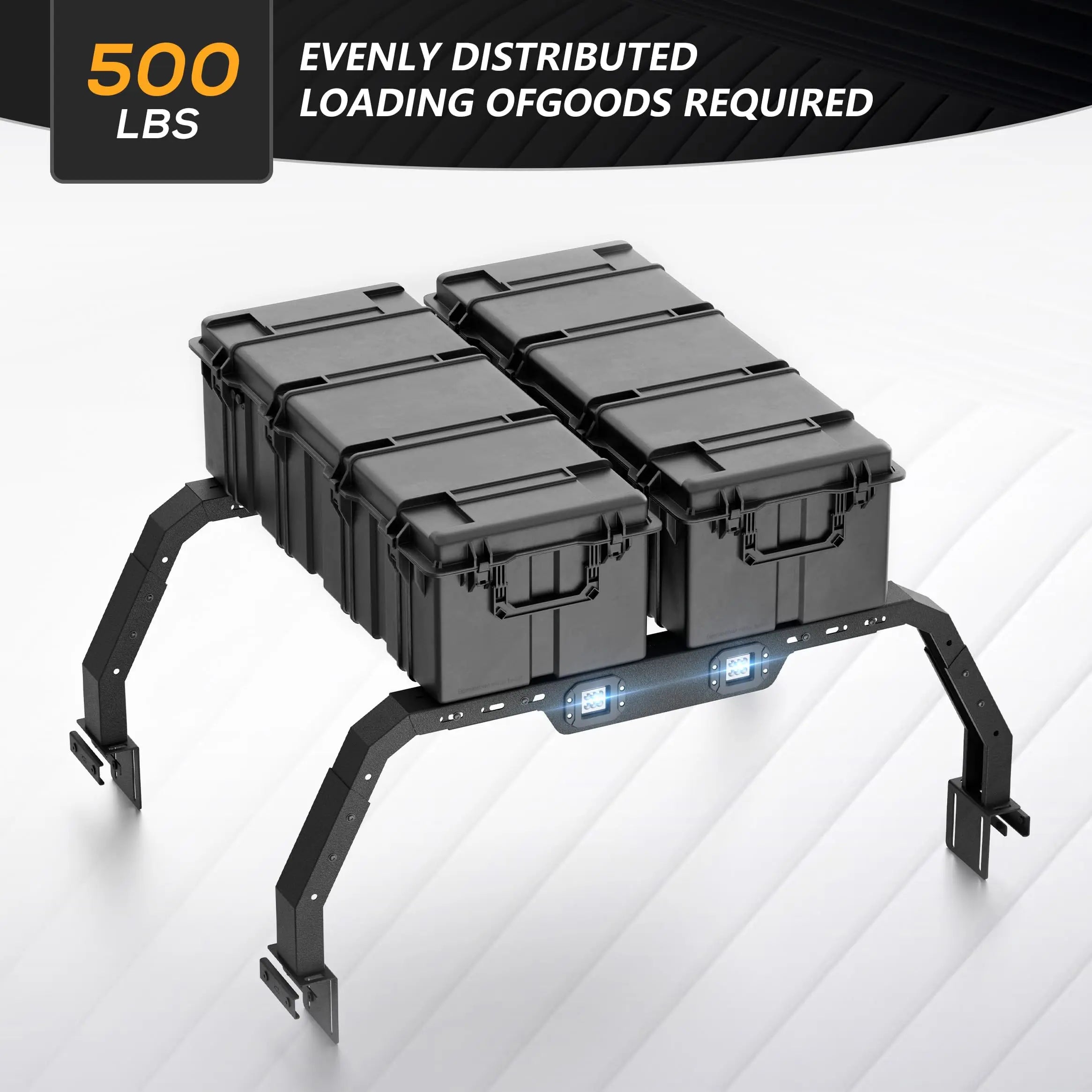 I love the paint finish , style and all the hold points to ratchet things down. The light bar is a added plus.