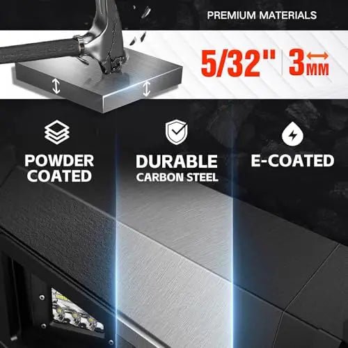 • 【Premium Quality Materials】YZONA Frontier rear bumper is made of high-strength steel for superior durability. With a two-stage textured black powder coating, it offers both style and enhanced protection. It is rust-resistant, ensuring long-lasting performance and aesthetics even if the powder coat gets damaged.