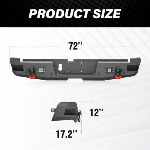 • 【Powerful Towing Capacity】YZONA Frontier rear bumper features two 4.75-ton D-rings, each rated at 9,500 lbs, providing reliable anchor points for towing and recovery. YZONA Frontier rear bumper boasts a stainless steel skid-resistant plate that provides a secure and stable footing, allowing you to easily access your truck bed with enhanced safety and stability.