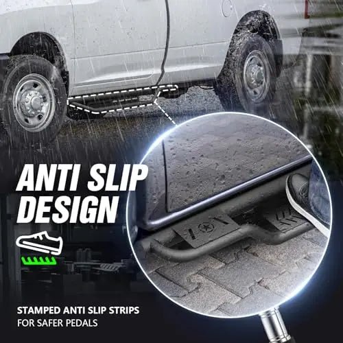 • 【Robust and Durable】: Crafted from 2mm thick carbon steel, each step can support up to 550 lbs per side. The textured black powder-coated finish with E-coating offers superior resistance to rust, corrosion, and abrasion—ensuring long-lasting durability even in tough off-road conditions.