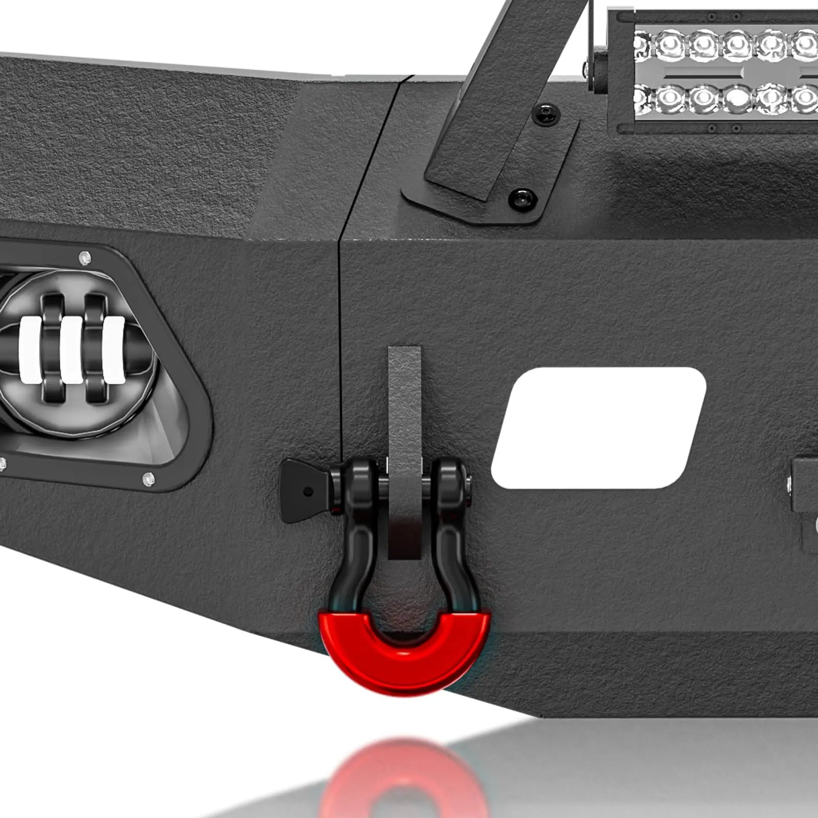 • 【Complete Accessories】The front bumper features dual, securely welded D-ring shackle mounts, both internally and externally reinforced. It comes with a 12,000 lbs winch plate, two 4.75-ton D-rings, a license plate bracket, a 120W LED spotlight, and four 18W LED spotlights. Complete installation instructions and all necessary screws are provided for an easy setup.